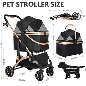 کالسکه کریر دار سگ و گربه تهیه شده از متریال با کیفیت دارای ویژگی های زیر است. این محصول دارای یک سبد در زیر کالسکه و همچنین یک جیب روی کریر مناسب برای حمل عروسک و غذا میباشد. طراحی ارگونومیک: طراحی زیبا و کاربردی و وزن سبک برای حمل راحت‌تر. چرخ‌های مقاوم و نرم: که حرکت در سطوح مختلف را آسان می‌کند. فضای تهویه‌دار: برای گردش هوا و راحتی بیشتر حیوان. محفظه‌های ایمن: برای محافظت از حیوانات خانگی هنگام حرکت. تاشو بودن: که فضای ذخیره‌سازی را کاهش می‌دهد. دارای محفظه برای قرار دادن لیوان حین پیاده روی . کمک فنرهای بسیار کاربردی برای جلوگیری از آسیب و فشار به ستون فقرات حیوان در سطوح ناهموار و دست انداز های خیابان. قابلیت جدا کردن کریر به صورت کامل و قرار دادن روی صندلی خودرو یا حمل به صورت جدا از کالسکه.