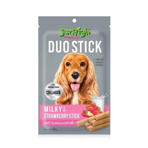 تشویقی JerHigh Duo Stick با ترکیب فوقالعاده شیر و توتفرنگی، یک میانوعده خوشمزه و سالم برای سگهای شماست. این محصول بافت نرم و استیکی دارد و سرشار از کلاژن است که به سلامت پوست و مو کمک میکند. برای تهیه این محصول کمیاب و با کیفیت پت شاپ پاپی پت در خدمت شماست و میتوانید این محصول را و در سریع ترین زمان با ضمانت سلامت و اصالت کالا درب منزل دریافت نمایید. برای بازدید از محصولات تشویقی سگ بر روی لینک زیر کلیک کنید.