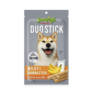 تشویقی JerHigh Duo Stick Milky & Banana یک اسنک مغزدار و بسیار خوشطعم برای سگهاست که از ترکیب طبیعی شیر و موز ساخته شده است. این محصول علاوه بر طعم دلپذیر، دارای کلسیم برای تقویت استخوانها و دندانها بوده و به دلیل بافت نرم و قابل جویدن، برای تمامی نژادها مناسب است. برای تهیه این محصول کمیاب و با کیفیت پت شاپ پاپی پت در خدمت شماست و میتوانید این محصول را و در سریع ترین زمان با ضمانت سلامت و اصالت کالا درب منزل دریافت نمایید. برای بازدید از محصولات تشویقی سگ بر روی لینک زیر کلیک کنید.